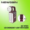 Rechargeable LED Emergency Light With Radio,LED Emergency Light 1) 6 LEDs flashlight+23 LEDs emergency light. 2) Rechargeable or use 3x"D" size batteries. 3) Lead-acid battery:400MAh. 4) With FM/AM/SW radio. 5) Wth external antenna. 6) With earphone jack. Packing: Gift Box QTY: 40pcs/ctn Meas: 55.8X40.8X47cm CBM: 0.0107m3
